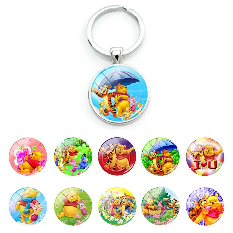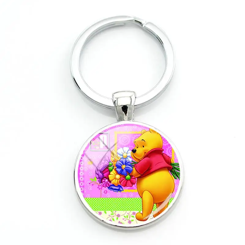 Disney брелок Забавный милый Винни-Пух сумка автомобильный брелок для женщин стеклянный кабошон для кулона брелки модные подарки ювелирные изделия WN354Изображение продукта: