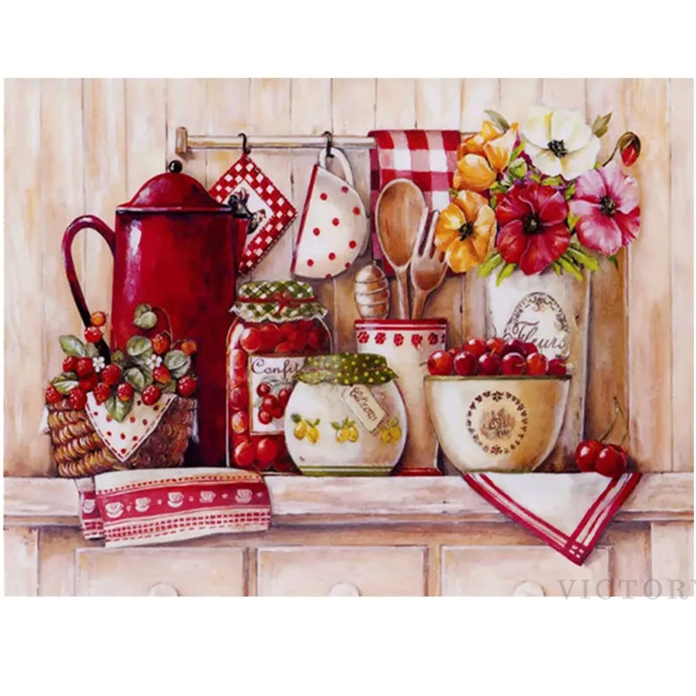 5D алмазная живопись кухонная утварь французская полная квадратная круглая Алмазная вышивка крестиком кухонное украшение ручной работы