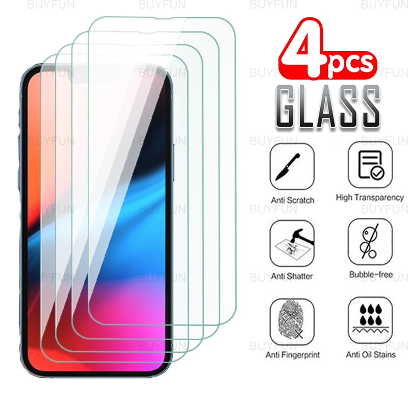 4 шт. закаленное защитное стекло для iPhone 13 12 11 Pro Max, Защита экрана для Apple iPhone i phone 13 12 Mini, защитная пленка