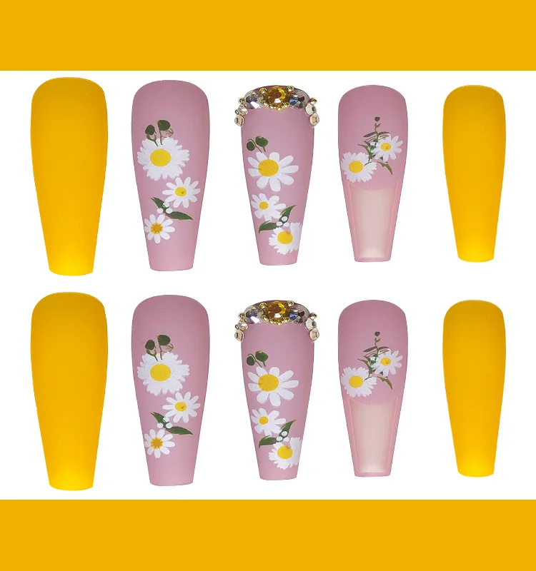 Стразы Длинные накладные ногти балерины с дизайном носимые гвозди н...