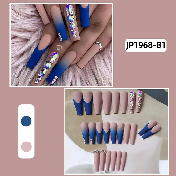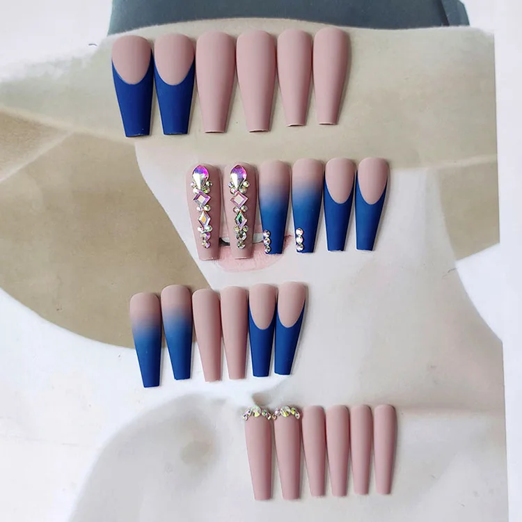 24 шт. матовые длинные градиентные синие розовые носимые гвозди нак...