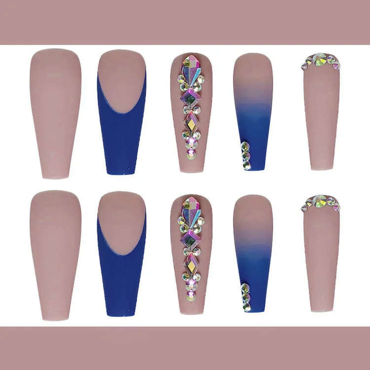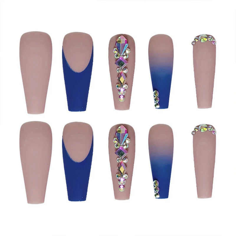 24 шт.кор. градиентные Синие Длинные накладные ногти Стразы Балерин...