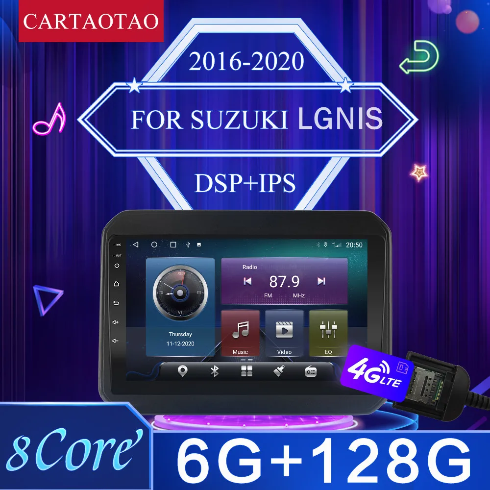 Автомагнитола 2 din для Suzuki Ignis 2016, 2017, 2018, 2019, 2020, android 10, 4G, Wi-Fi, DSP, видео, мультимедийный плеер, навигация, GPS, CarPlay
