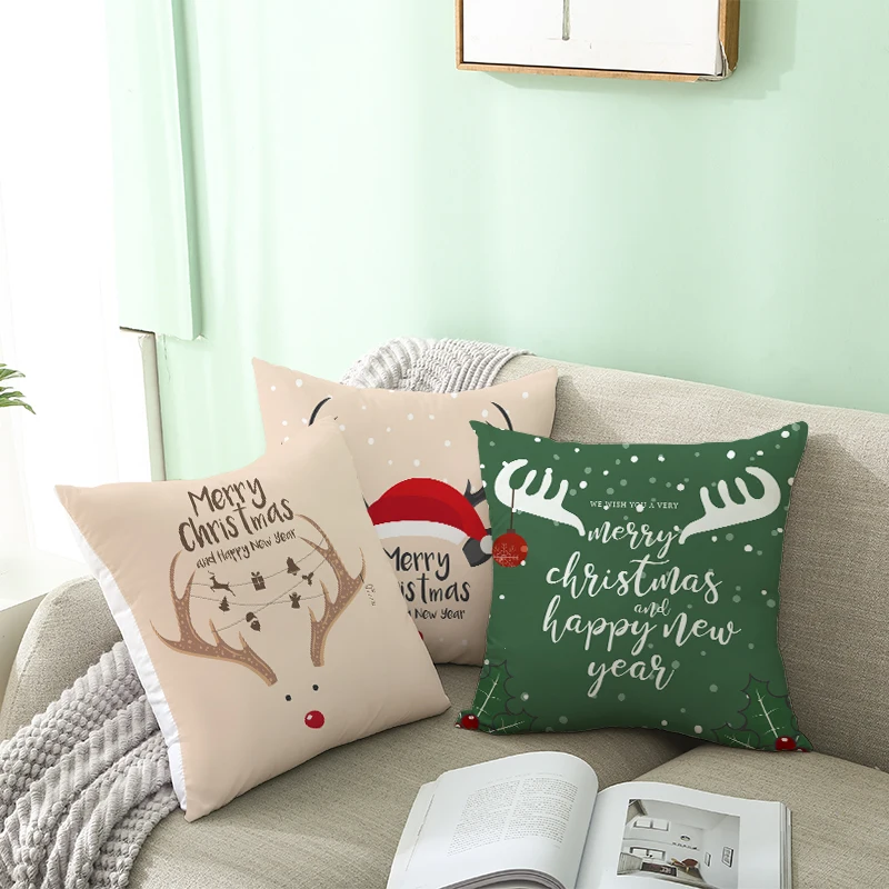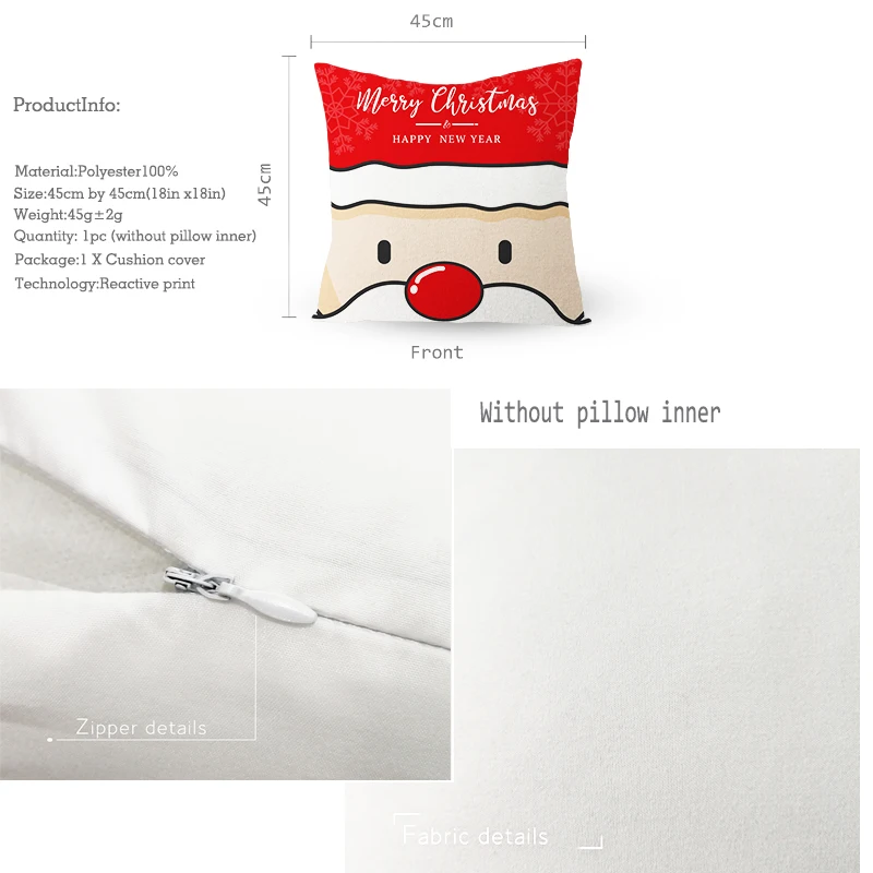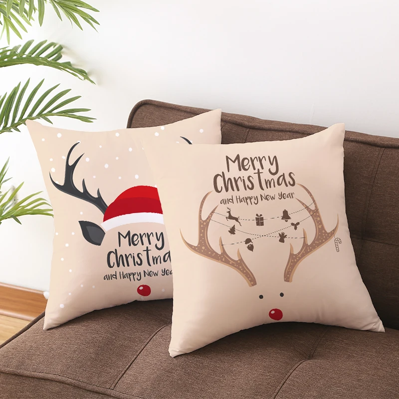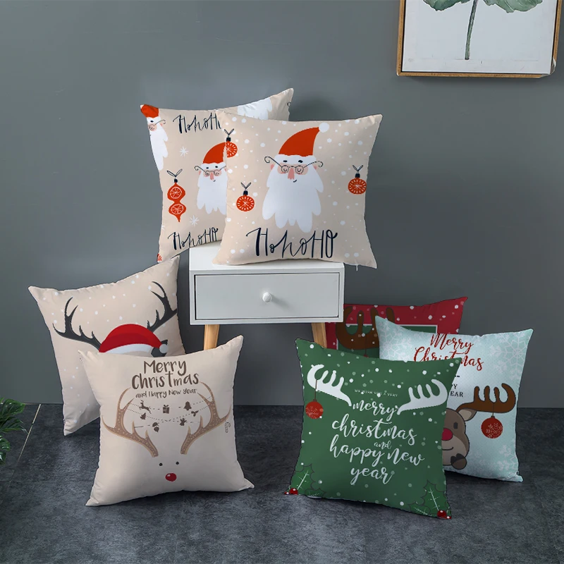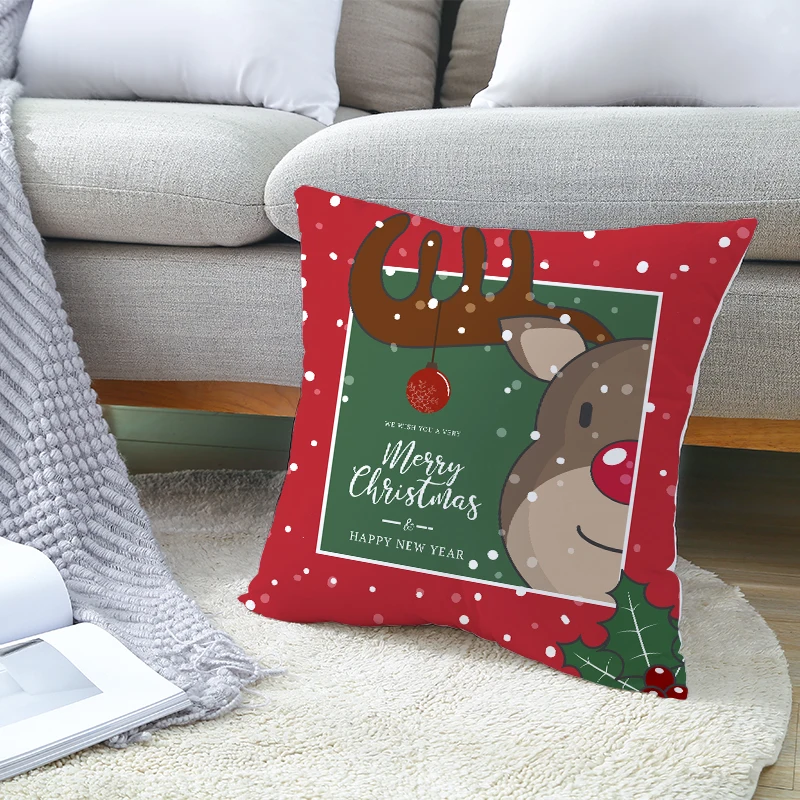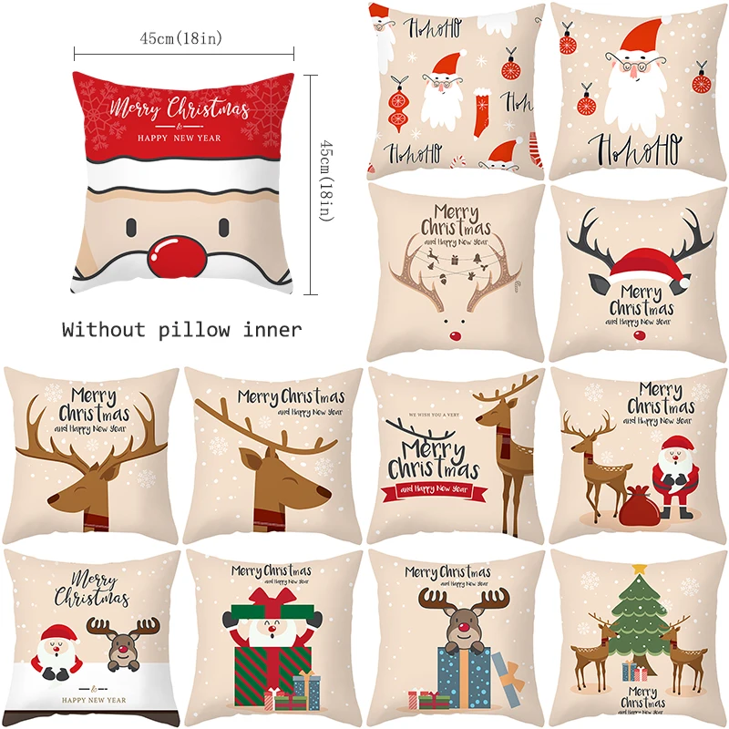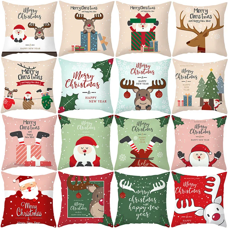 Рождественская наволочка 45x45, декоративная наволочка с изображением мультяшного Санты, оленя, диванные подушки, Новогодний Декор для дома, наволочки из полиэстера