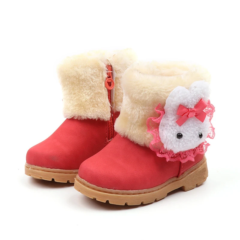 Зимние ботинки для девочек, теплые зимние ботинки для малышей среднего и детского сада, хлопковые ботинки, толстые плюшевые детские ботинки с милым кроликом