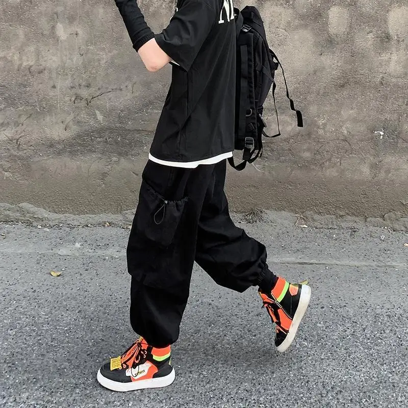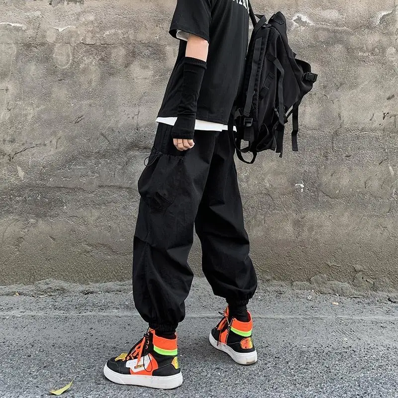 Штаны-карго HOUZHOU мужские, джоггеры, спортивные брюки-карго, модные брюки Японская уличная одежда Techwear в стиле Харадзюку, хип-хоп, черные