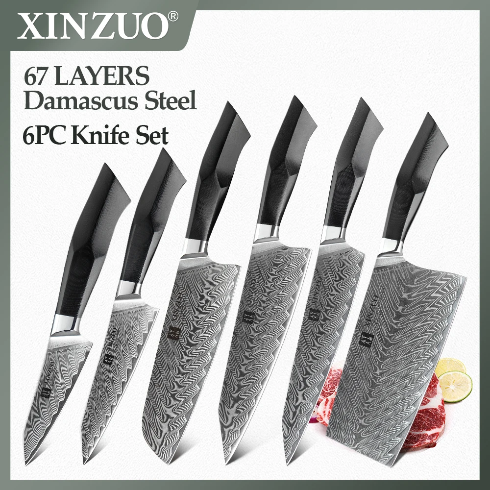 Набор ножей XINZUO VG10 из дамасской стали, Комплект кухонных резцо...
