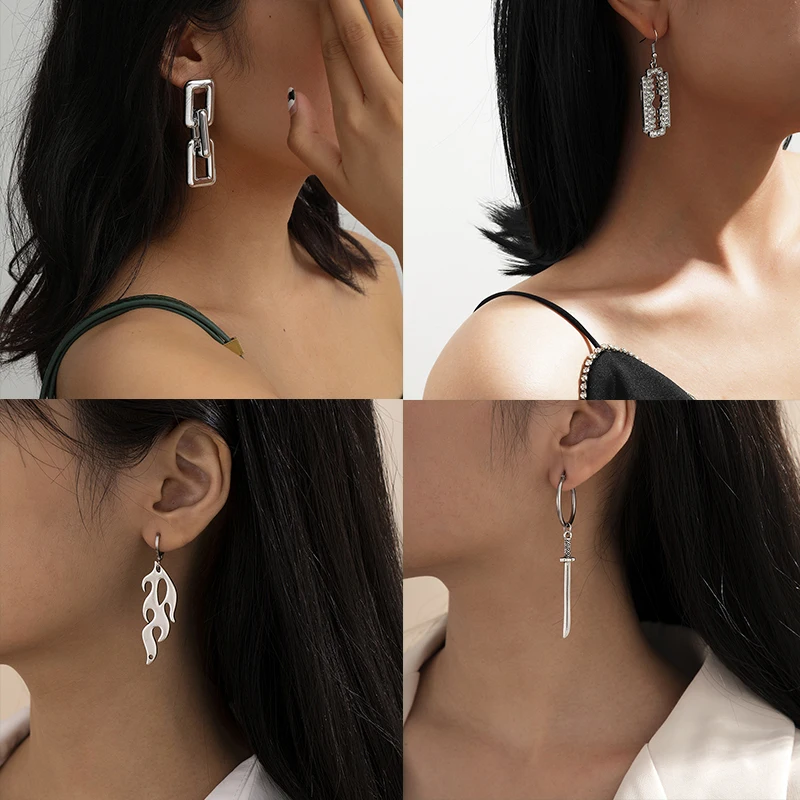 Вивиледи панк хип-хоп сплав нож пламя замок квадратная кнопка кулон Бабочка Кольцо Серьги женские пирсинг ювелирные изделия Прямая доставка