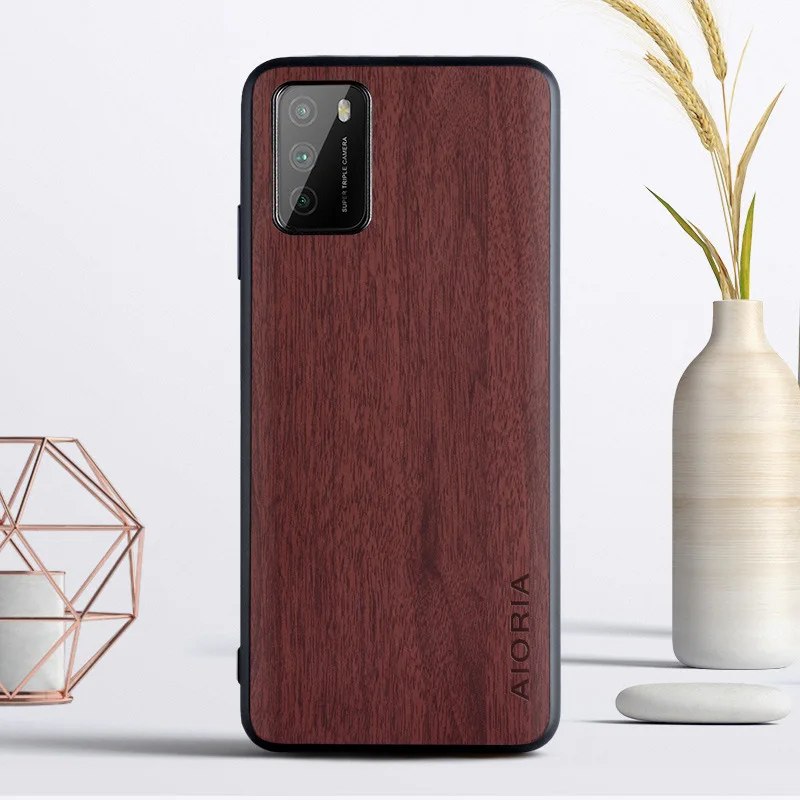 Чехол для Xiaomi Poco M3, древесный дизайн, мягкий ТПУ, Жесткий Пол...