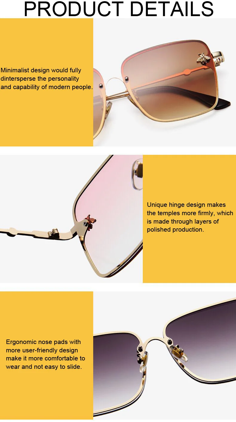 Солнцезащитные очки в ретро-стиле женские, квадратные модные популярные солнечные, без оправы, в большой металлической оправе, для путешествий, летние