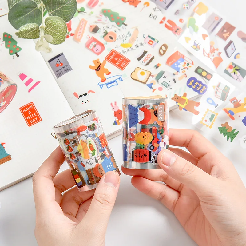Милая мультяшная декоративная лента BULA для журнала сделай сам, этикетка для скрапбукинга, кавайные наклейки, прозрачные строительные принадлежности для школы и офиса