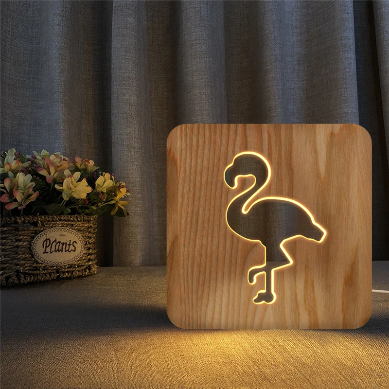 Деревянная настольная лампа в форме фламинго, животного, мира, украшение для детской комнаты, креативный USB-светильник для спальни, светильник