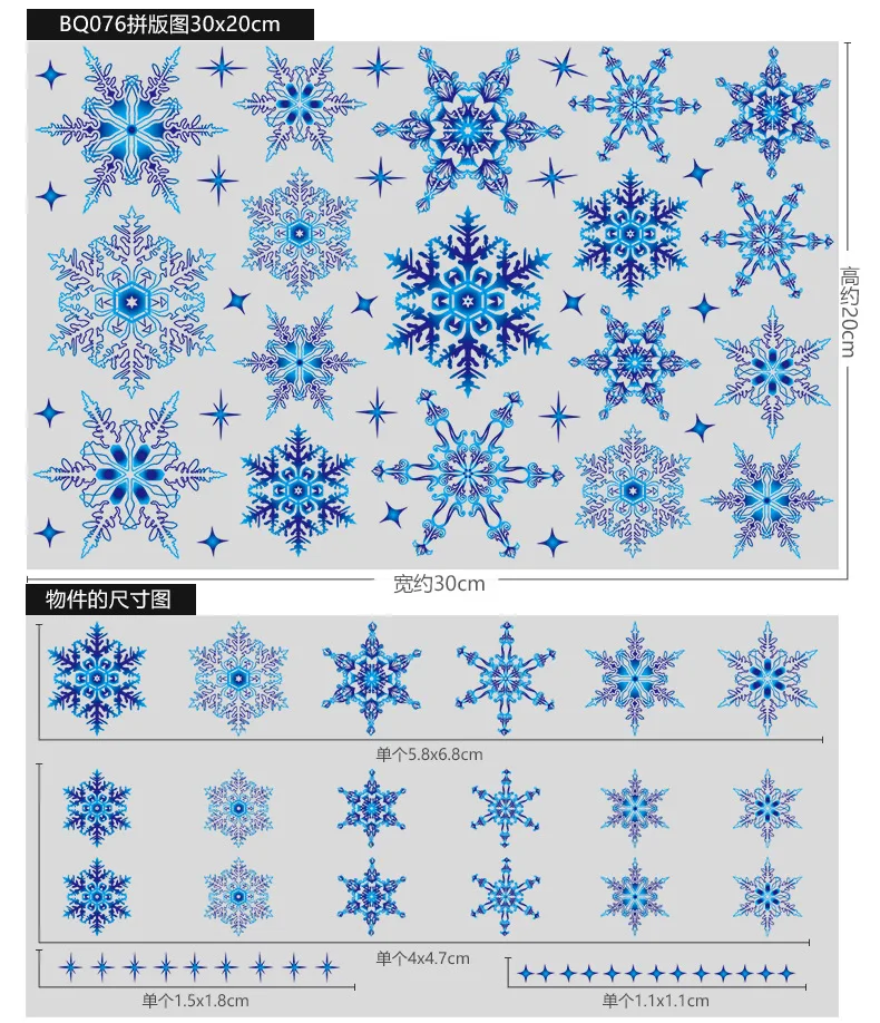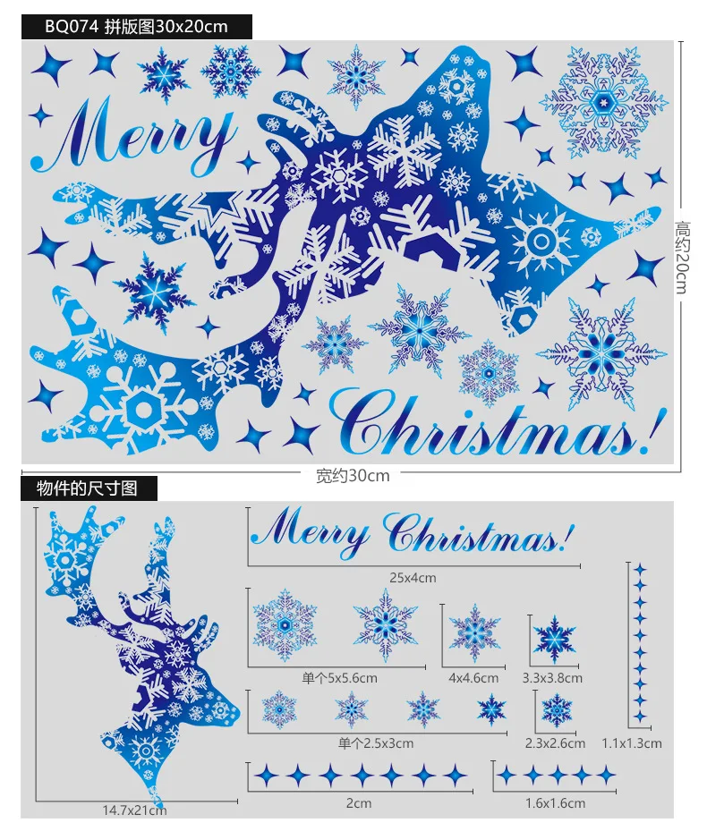 2022 новые рождественские синие снежинки Лось Электростатическая На...