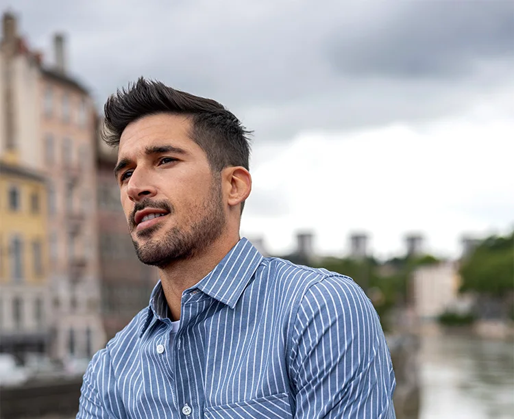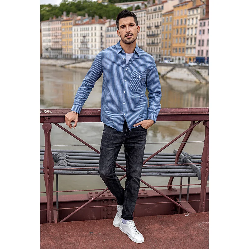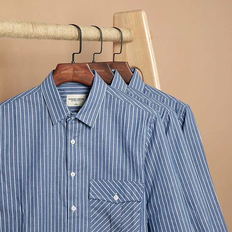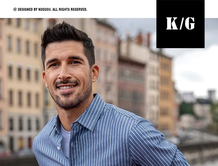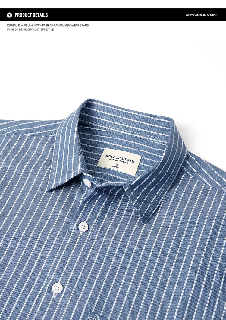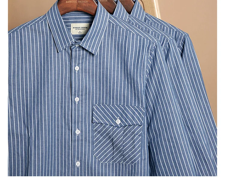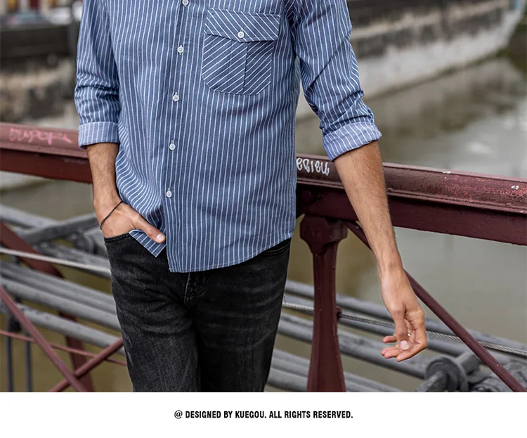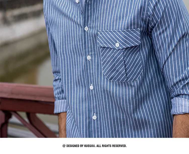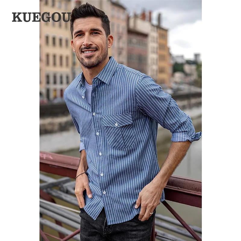Мужская рубашка в полоску KUEGOU100 % хлопок, с длинным рукавом