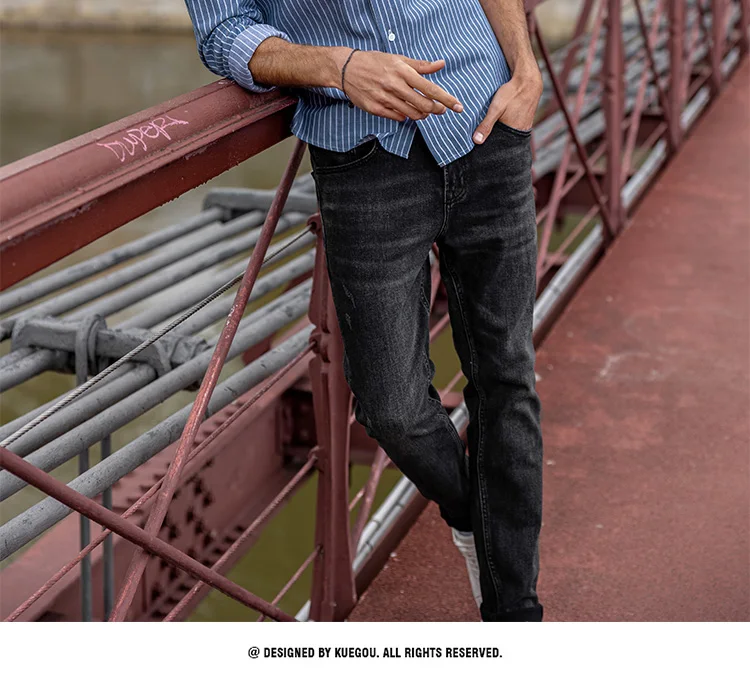 KUEGOU хлопчатобумажная одежда мужские рубашки стильное джинсовое п...