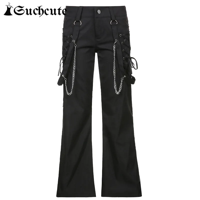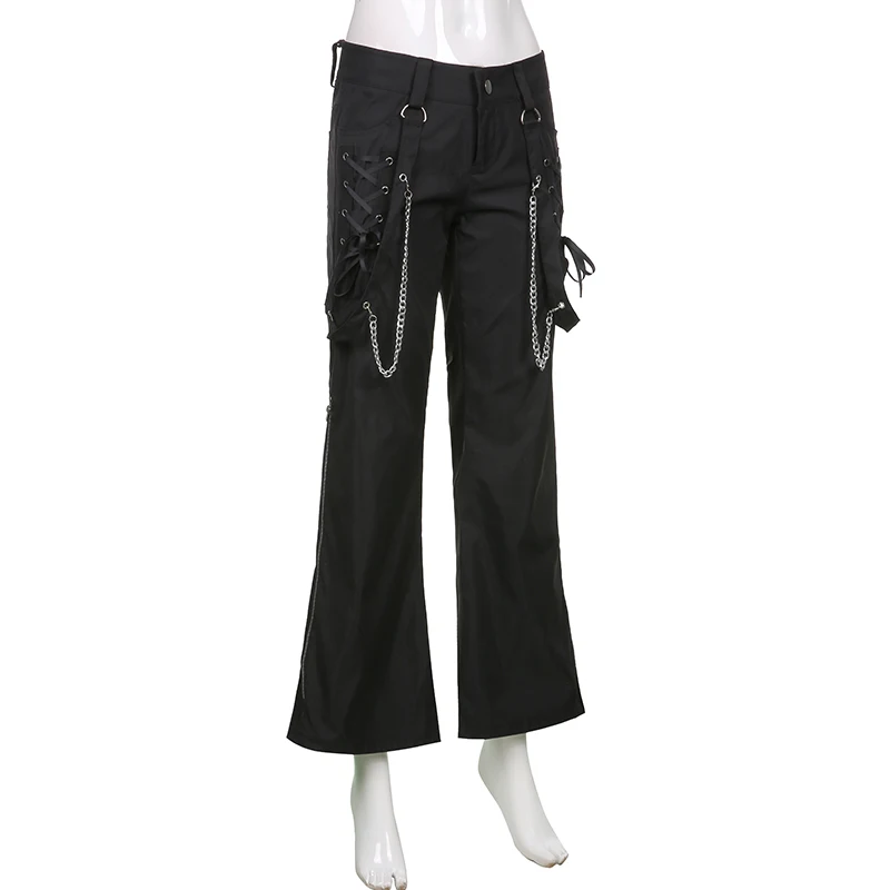 Брюки женские, широкие, с цепочкой и высокой талией, в готическом стиле