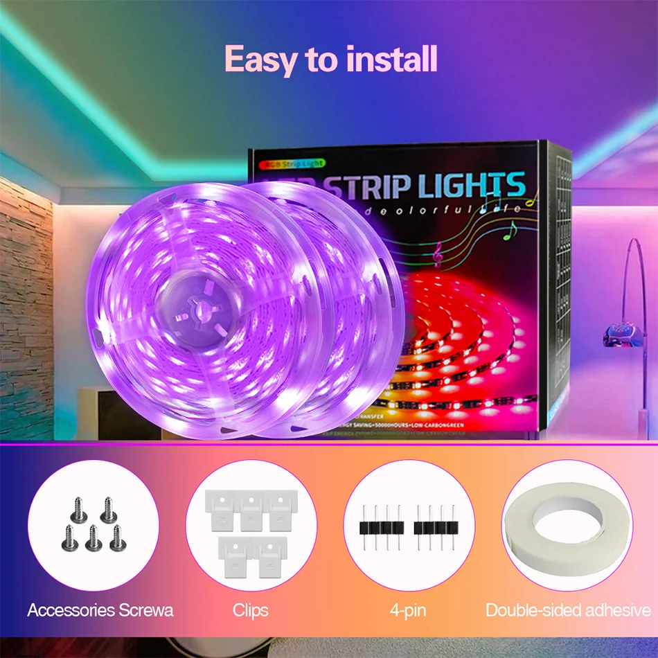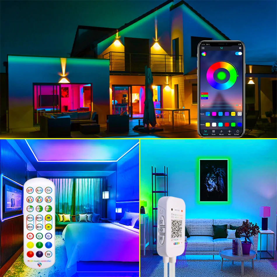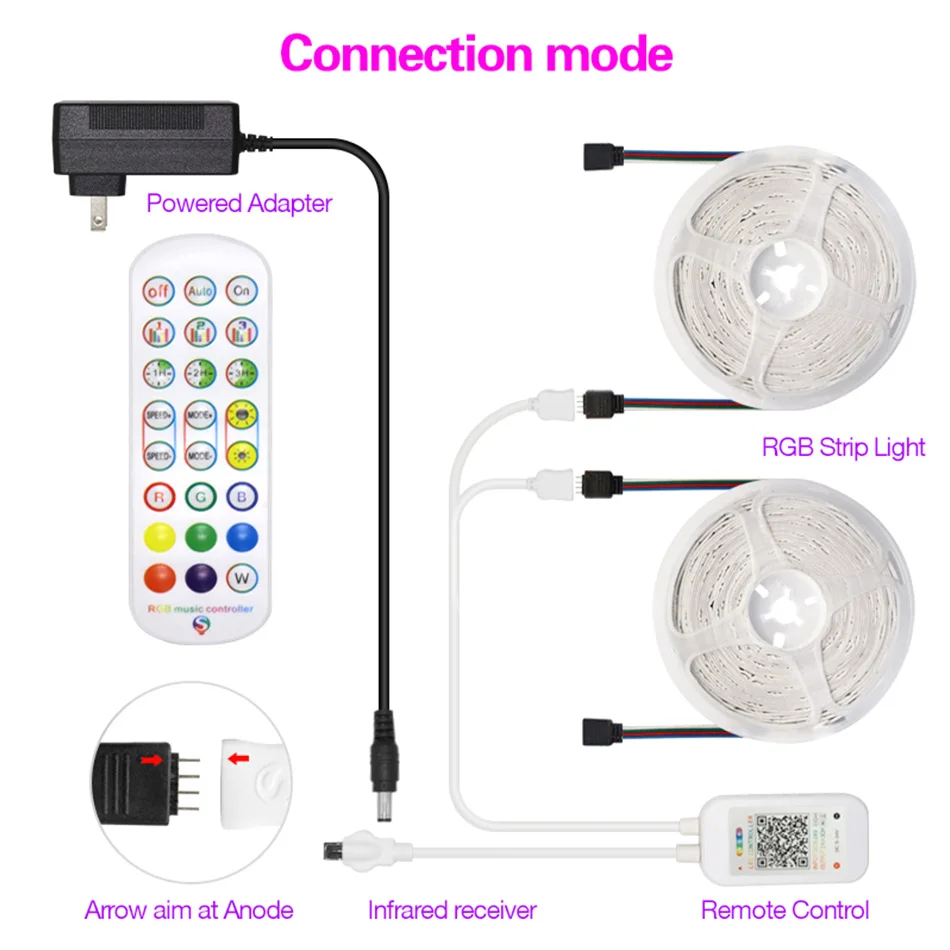 Светодиодсветодиодный музыкальная разноцветная RGB-лента с Bluetooth 5050, декоративная неоновая лампа для комнаты, 5 м, 10 м, 20 м, Диодная настенная лампа 12 В с адаптером