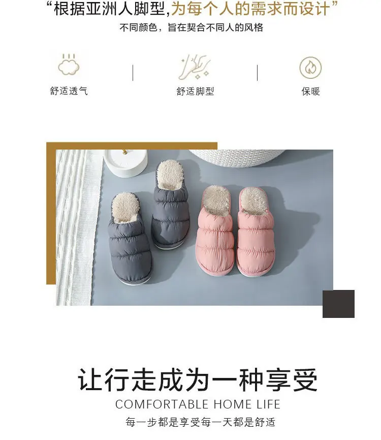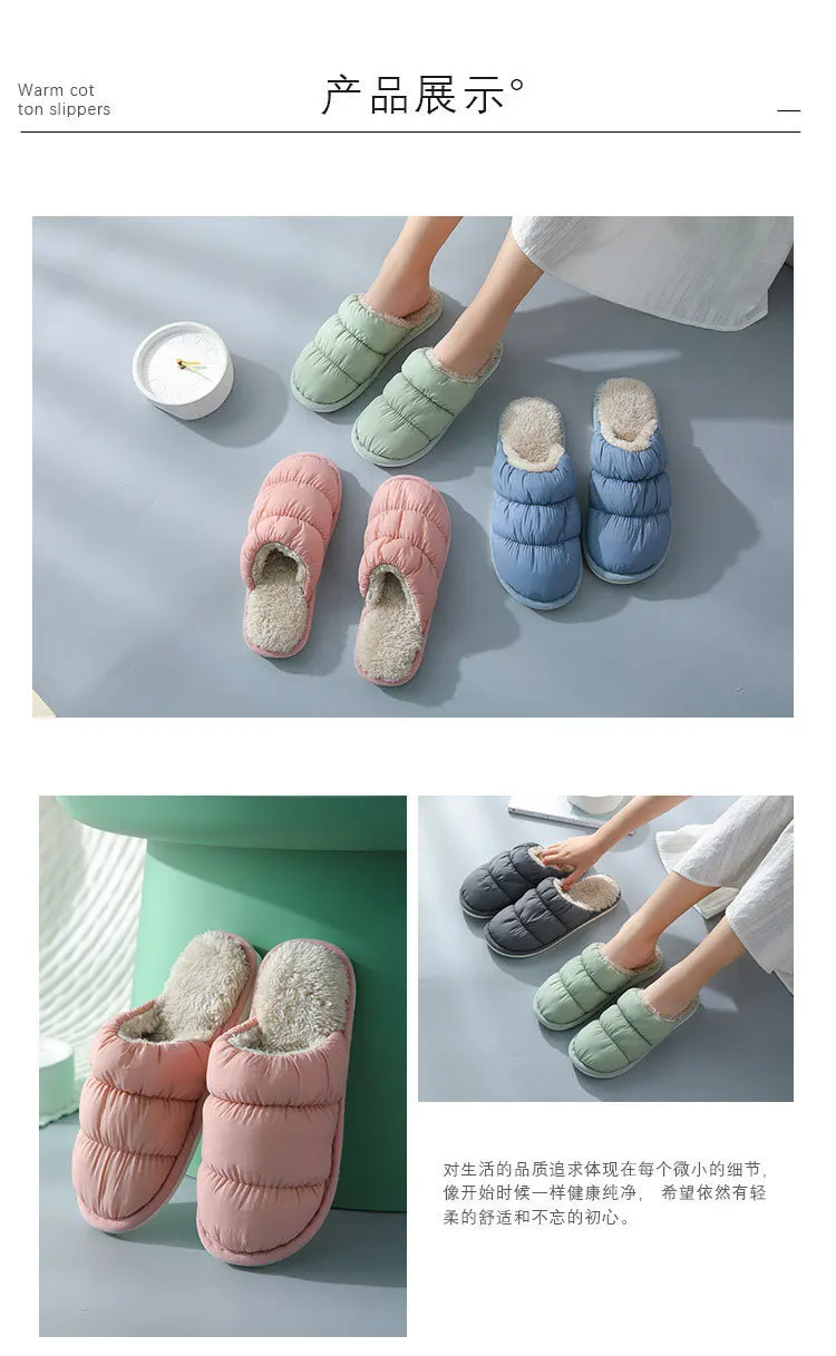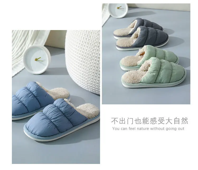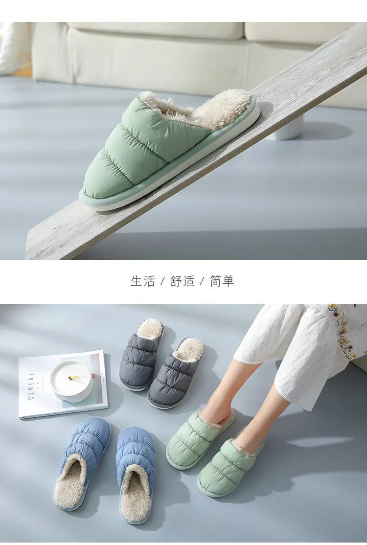 Домашние хлопковые тапочки из пуховой ткани для женщин и мужчин, водонепроницаемые Нескользящие домашние теплые тапочки, шитые бархатные Тапочки для пар