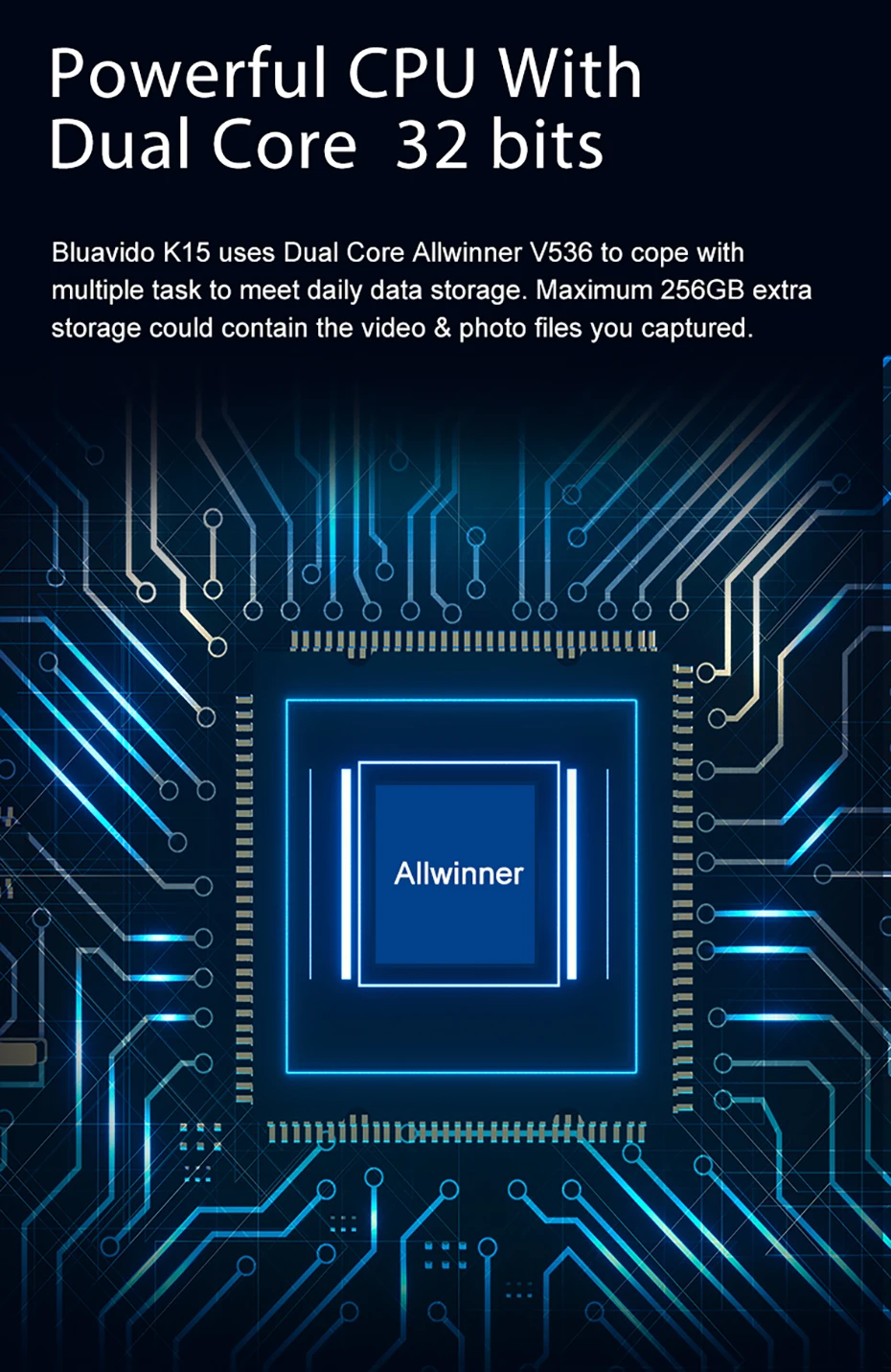 1. Чип Allwinner V536 Cortex-A7@1.2GHz:Allwinner V536 супер качество 4k HD и защита производительности.2. Запись видео Super HD 4K 2880x2160P:Поддержка видео в 2880x2160P. Видео и аудио Автоматически записываются в бесконечном цикле и сохраняются на карте памяти. Записывайте дорожные происшествия, живописные путешествия, неожиданные моменты или любое достойное видео в социальных сетях.3. Сверхширокий угол 145 градусов:Наши линзы на 145 градусов состоят из 6 частей стекла, они поддерживают широкий угол, чем обычные линзы на 130 градусов. И имеет более широкий спектр зрения.4. Встроенный GPS:Функция GPS предназначена для записи местоположения маршрута вождения. Скорость и маршрут движения можно увидеть на Google map.5. Подключение Wi-Fi:Телефон и камеру можно подключить по Wi-Fi для просмотра экрана съемки камеры. Приложение Roadcam (IOS/Android)6. Встроенный g-сенсор:Встроенный Акселерометр, чувствительное Сенсорное столкновение, критический момент Автоматическая блокировка важных изображений, оставляет реальные подробные видео доказательства, продуманная защита.7. Циклическая запись:При заполнении места для хранения он может автоматически покрывать более ранний сегмент.8, 24 часа парковкиКогда двигатель автомобиля выключен (камера получает питание от автомобильного аккумулятора), камера будет в спящем состоянии. Теперь, если автомобиль сбит, камера включится и начнет запись автоматически, через 1 минуту камера снова выключится и заработает. [необходимо купить линию OBD buck]