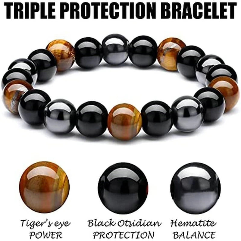 Браслет с тройной защитой для мужчин и женщин, гематитовый черный обсидиан, тигровый глаз, каменные браслеты, мужские ювелирные изделия