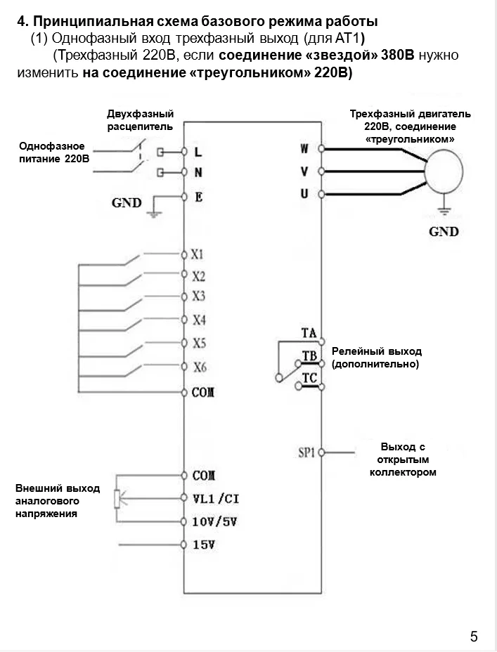Уведомление: Он не может подключить мотор возбуждения, может повредить инвертор, он может только подключить асинхронный двигатель,