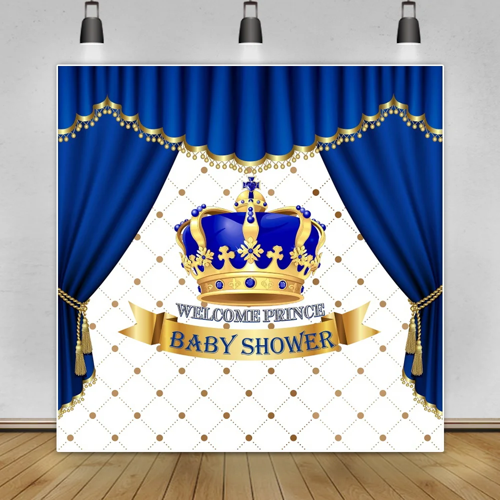 Фон для фотосъемки с изображением принца, вечеринки в честь Дня рождения ребенка, голубой занавес, корона, Портрет ребенка с именем, индивидуальный плакат, Фотофон