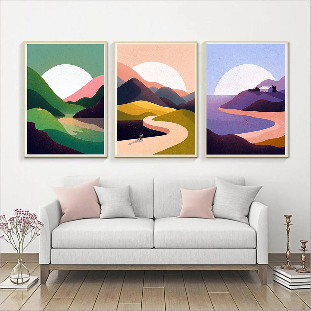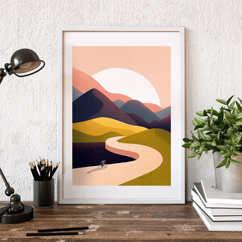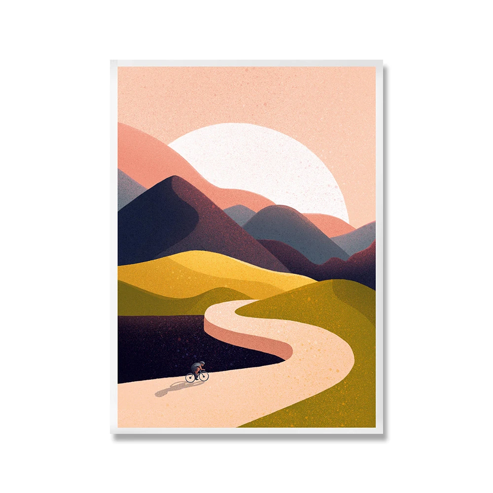 Скандинавский велосипед Велоспорт Горный Холст Картина винтажный Солнечный пейзаж Йога велосипедист плакат настенная печать картины украшение дома