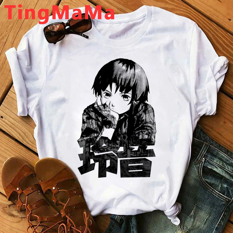 Лидер продаж, футболка с рисунком японского аниме серийные эксперименты, Lain, мужские футболки в стиле каваи Харадзюку, топы унисекс, Мультяшные футболки для мужчин