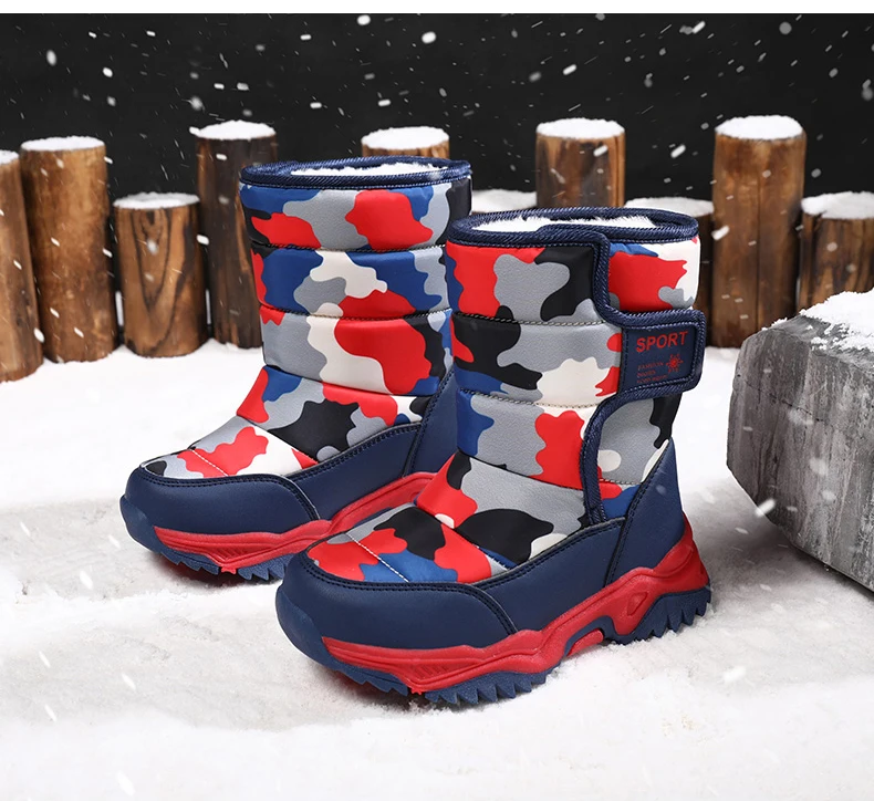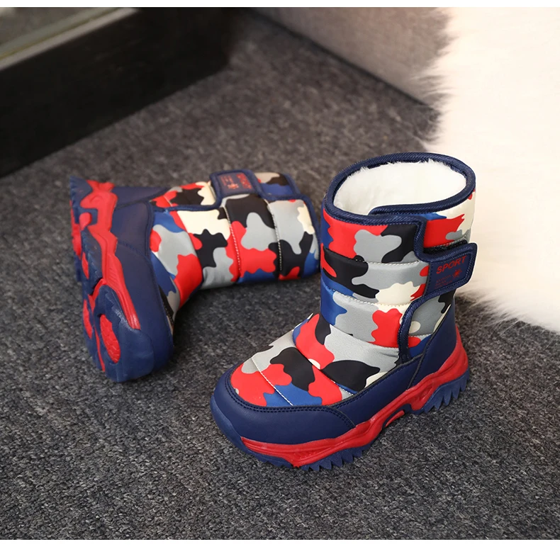 Детские зимние ботинки с бархатной подкладкой, теплые зимние ботинки для мальчиков с хлопковой подкладкой, водонепроницаемая детская кожаная обувь, товары для активного отдыха