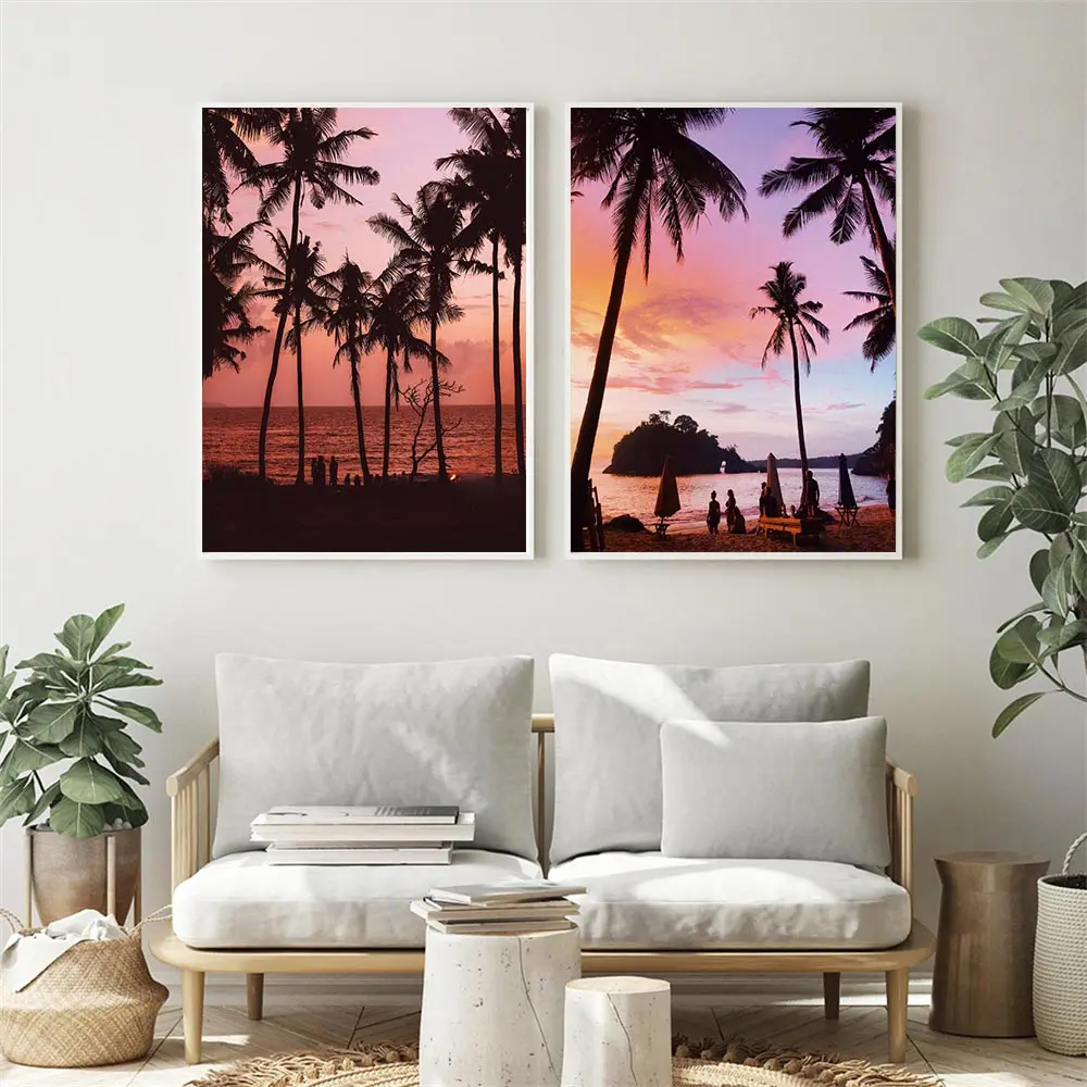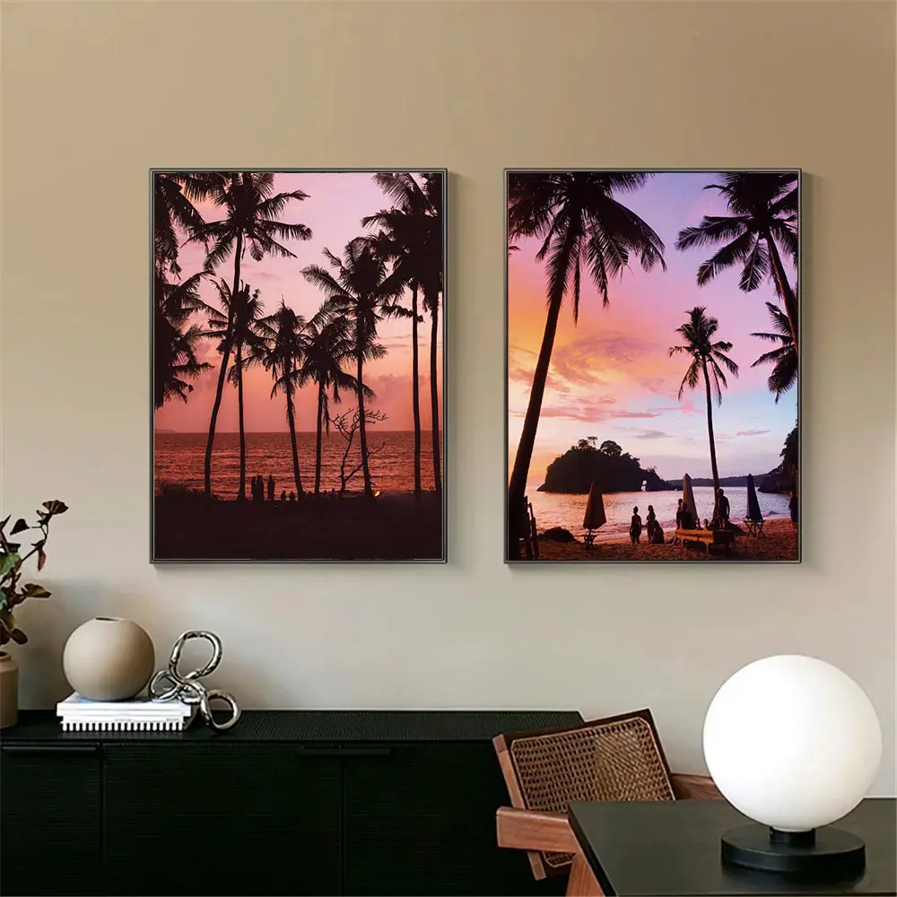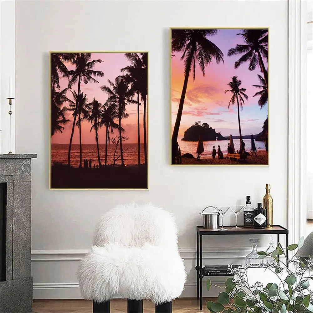 Пляжное кокосовое дерево в скандинавском стиле плакат закат светящиеся принты природный пейзаж настенная живопись на холсте Современные картины декор для гостиной