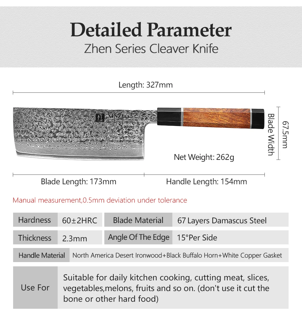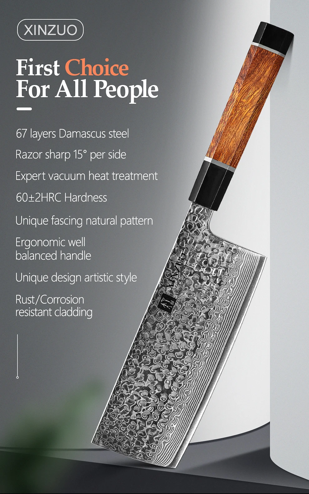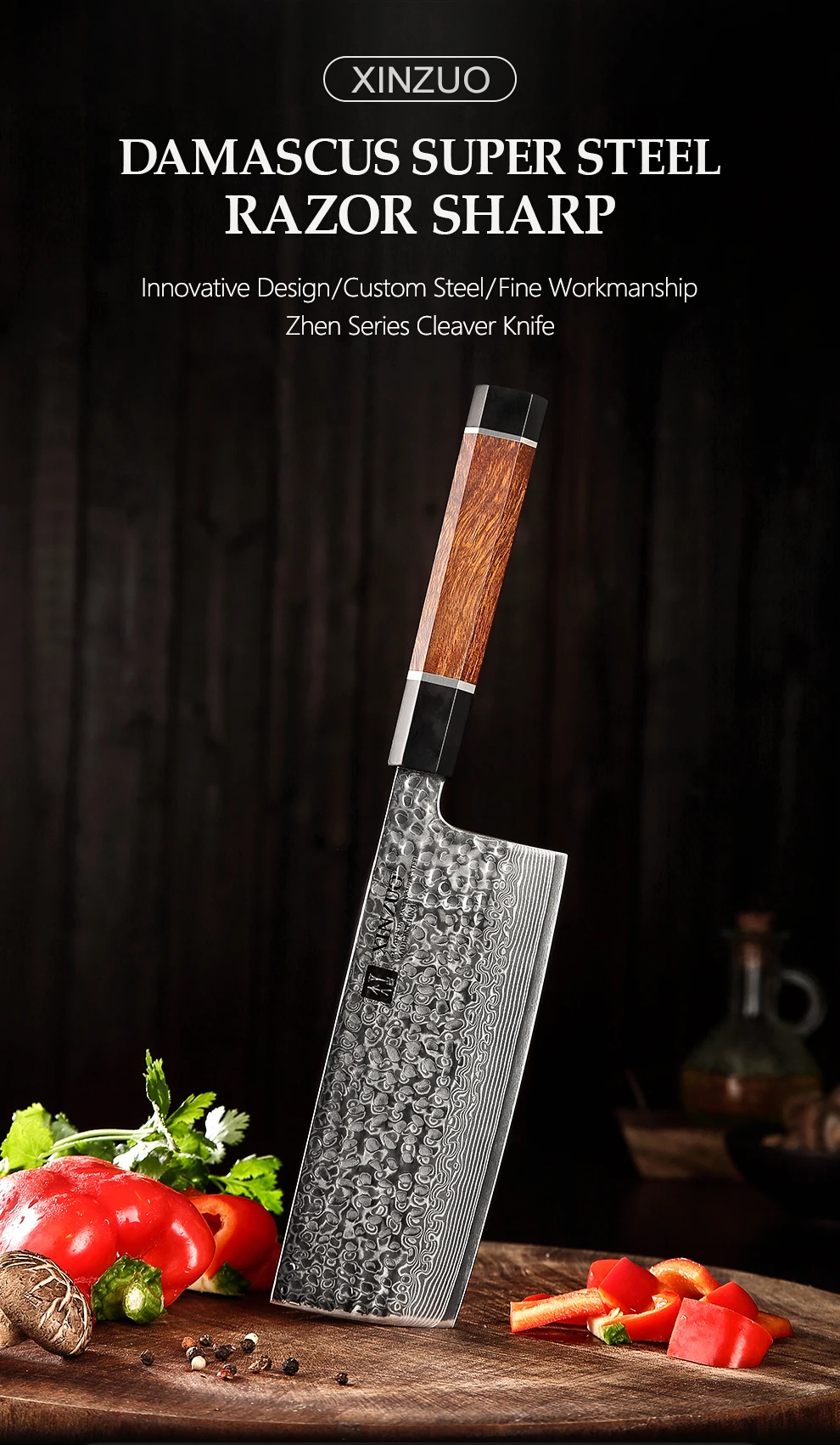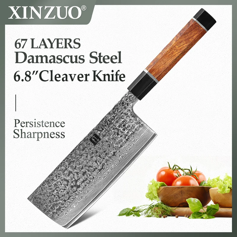 Нож-Кливер XINZUO 6,8 дюйма Janpanse, 67 слоев дамасской стали, узо...