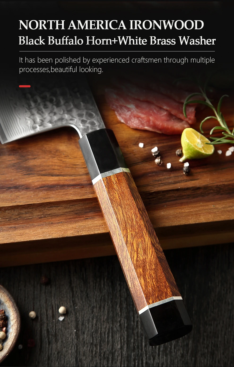 XINZUO VG10 Дамасская сталь 6,8 "Кливер нож с пустынной железной ру...