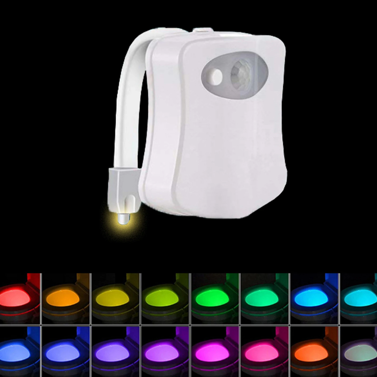 Светодиодный ночсветильник для сиденья унитаза светильник датчиком движения, 16 цветов, Сменные лампы, питание от батарейки AAA, подсветка для туалета для детей