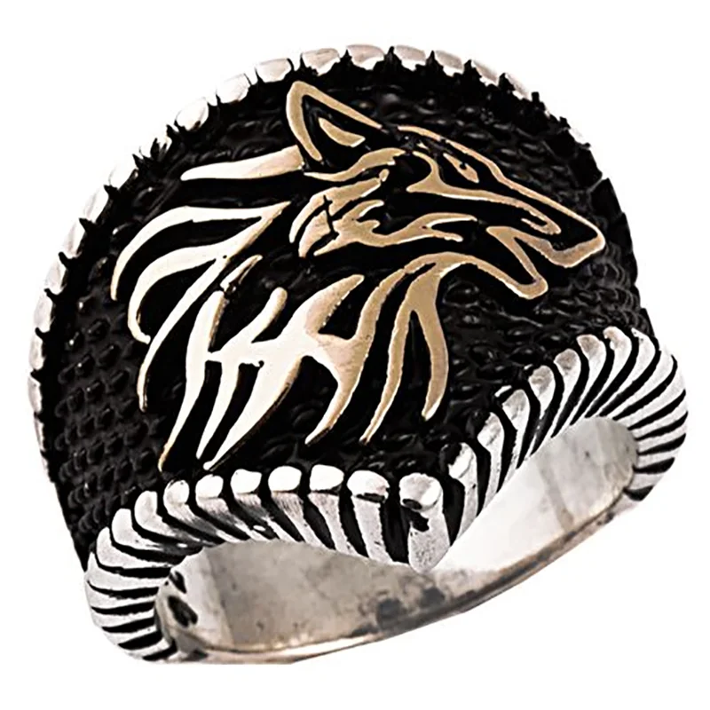 Мужское кольцо с резным узором в виде волка, с серебряным покрытием