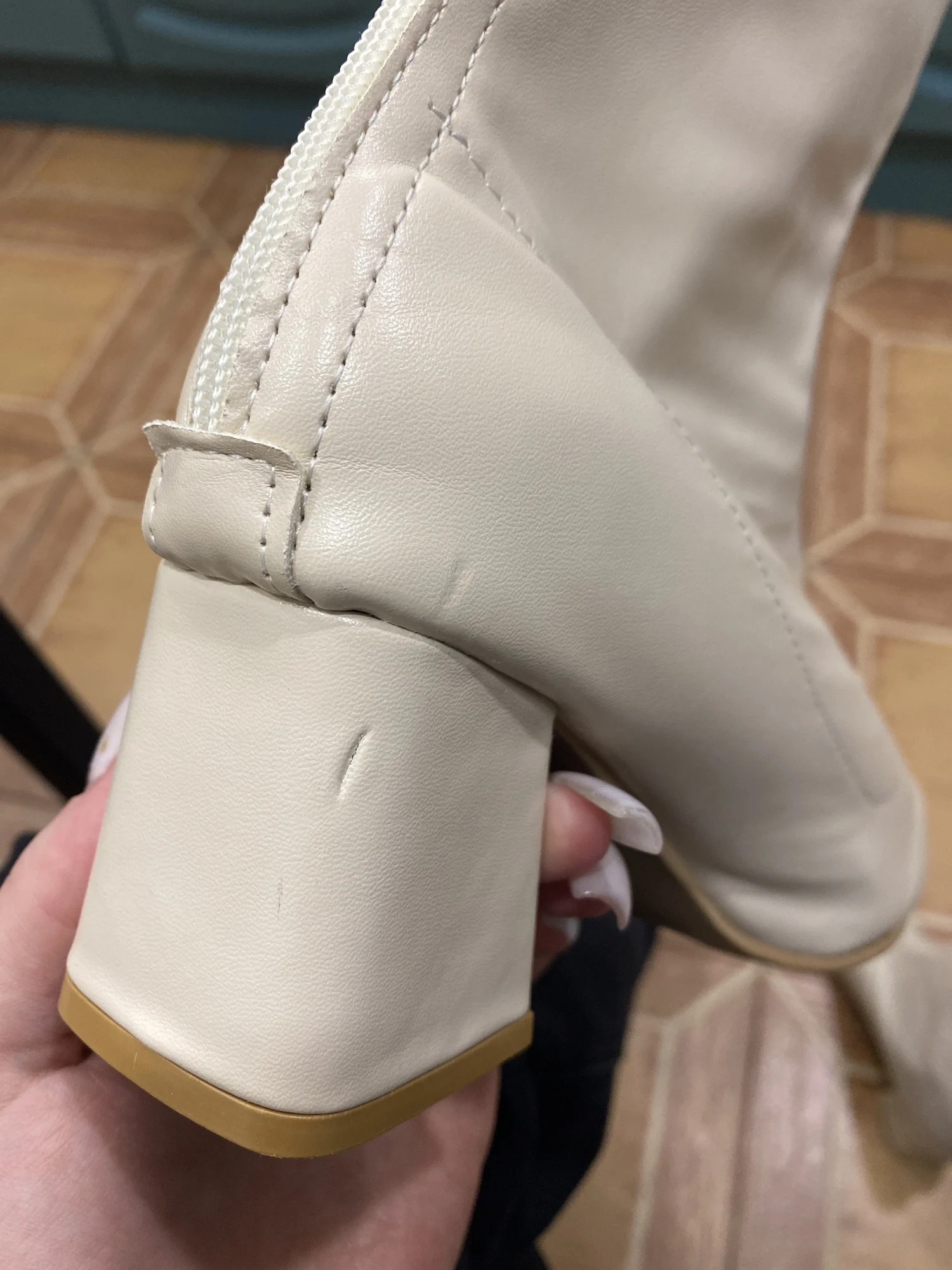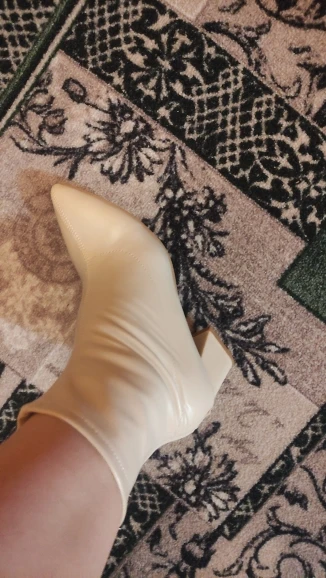 Качество ужасное, размер не соответствует. Везде клей, каблук не проклеин до конца, материал, как пакет. Вонь ужасная. Только на мусорку.