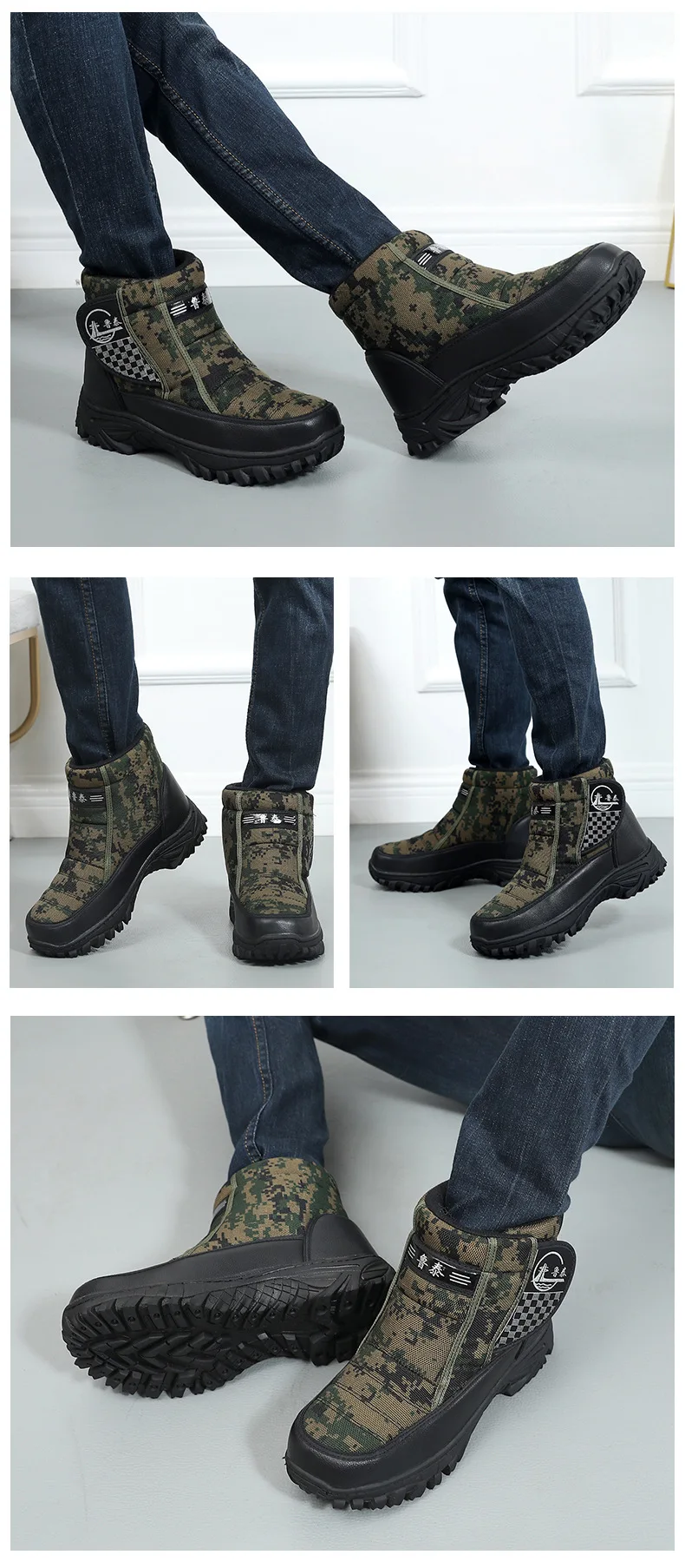 Мужские и женские камуфляжные зимние ботинки, плюшевая подкладка, сохраняют тепло в зимний сезон, мужские ботильоны, водонепроницаемые ботинки с резиновой подошвой и хлопковой подкладкой