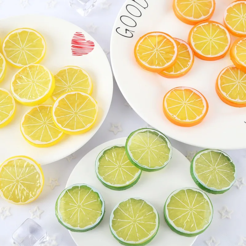 Искусственные фрукты, 5 шт., искусственные ломтики лимона, рождество украшение в виде фруктов, для кухни, свадьбы, поддельный лимон, декоративные принадлежности