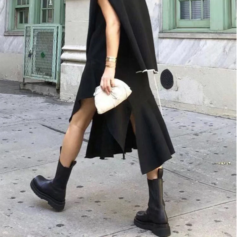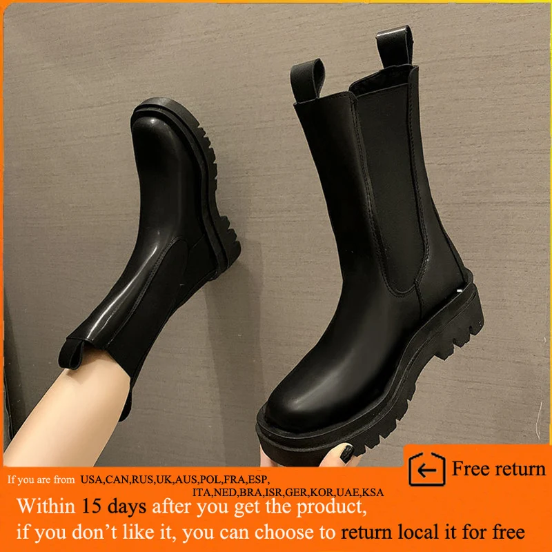 RYAMAG 2021, женские модные новые ботинки Martn, женская обувь Ankel, женские осенне-зимние Бархатные короткие ботинки челси на толстой подошве в британском стиле