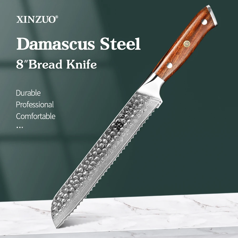 Серия XINZUO Yu, нож для хлеба из дамасской стали