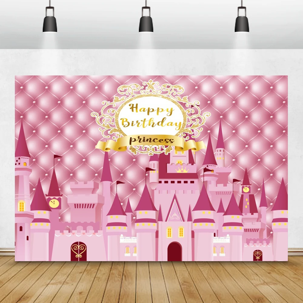 Фотографический фон с розовым замком единорогом каретой блестящими ...