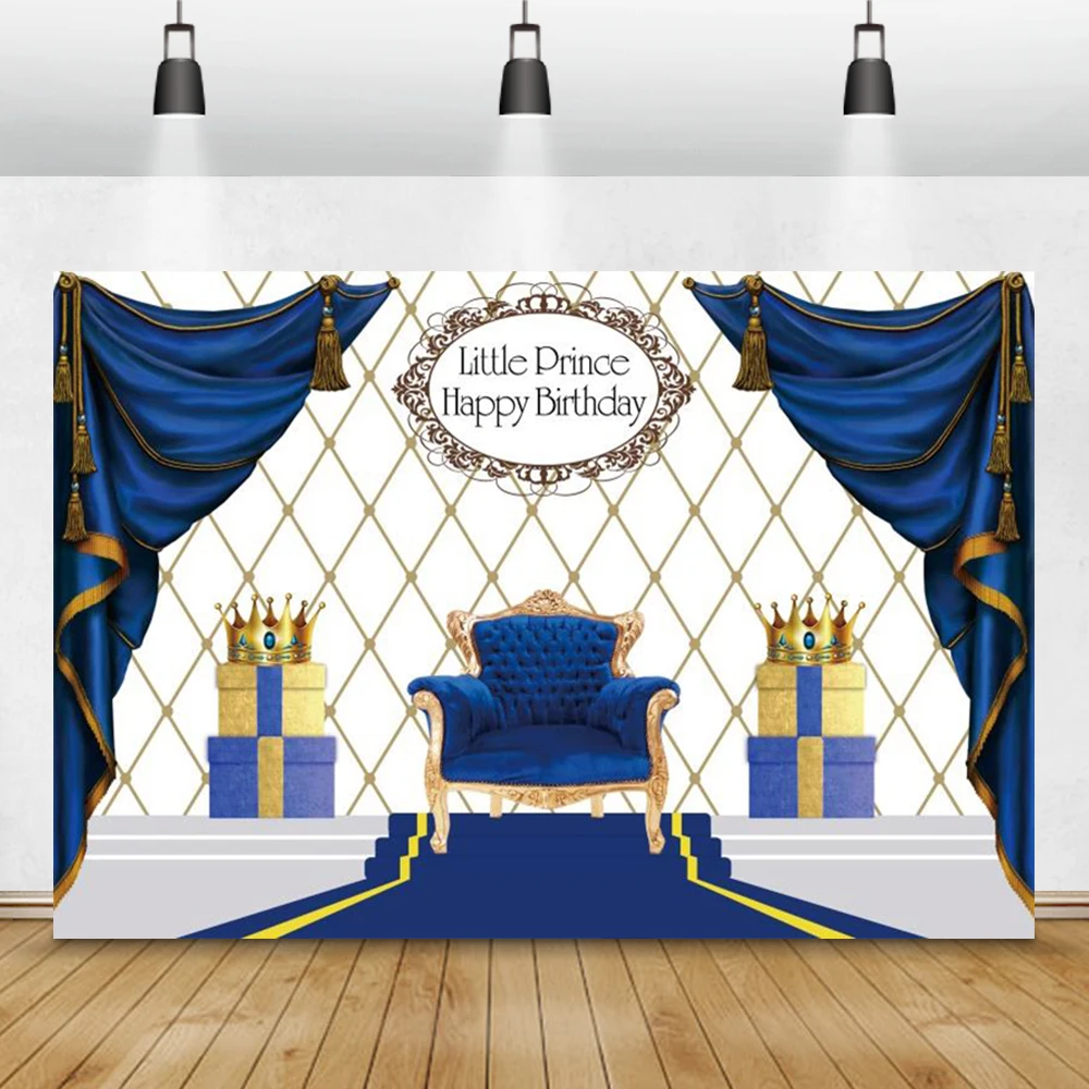 Фон для фотосъемки с изображением Маленького принца на день рождения с изголовьем синего замка
