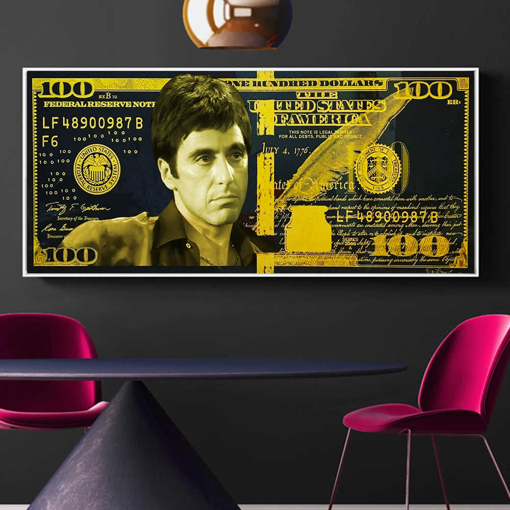 Картина на холсте с рисунком Тони Монтана, золото 100 долларов