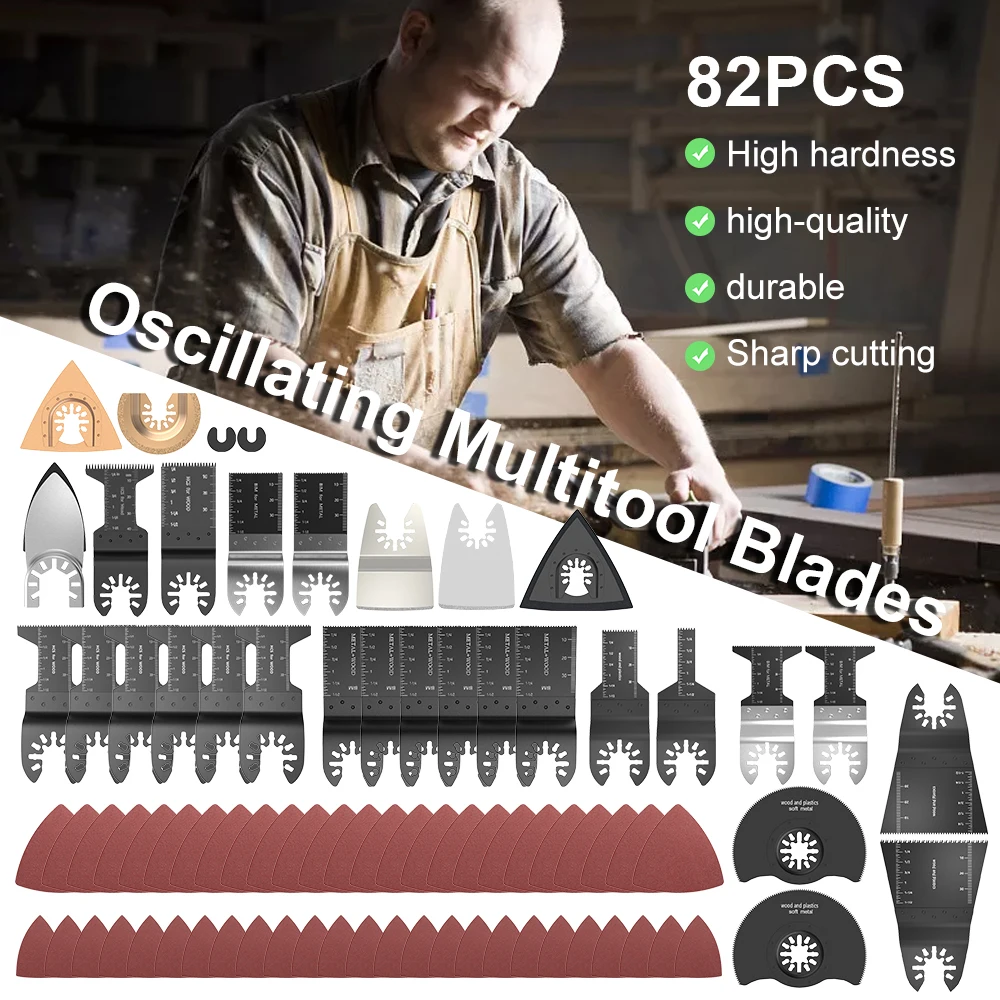 82 шт. многофункциональные лезвия для пилы, быстросъемные Осциллирующие инструменты, аксессуары для резки металла, дерева, пластика, стекла, камня