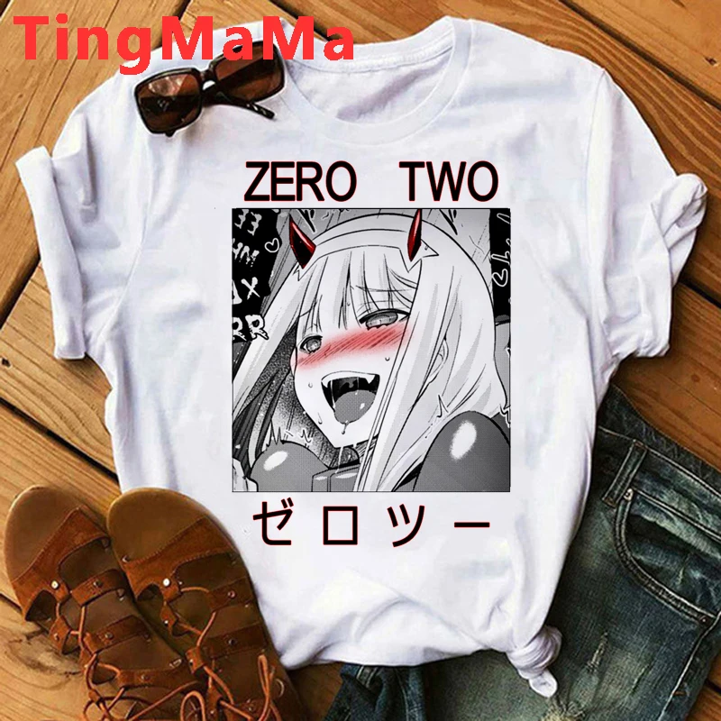 Лидер продаж, футболка с изображением японского аниме любимый в Фране, мужские футболки с изображением героев мультфильма Zero Two Graphic, повседневные мужские футболки в стиле Харадзюку