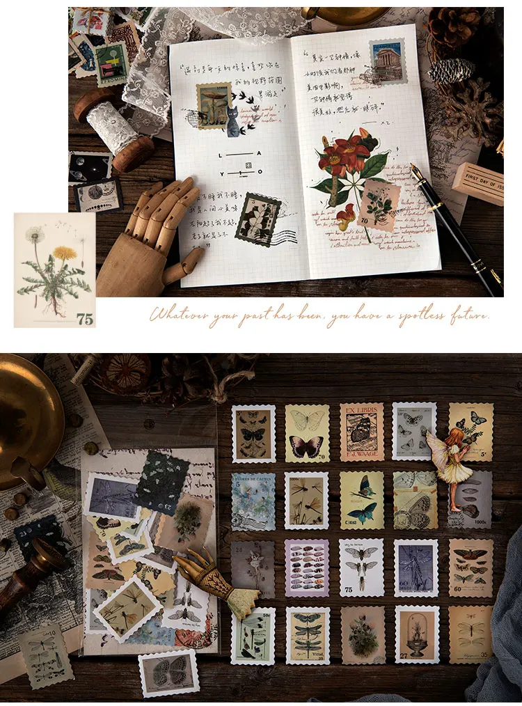 46 шт. Набор наклеек для штампов, серия фильмов, винтажные растения...