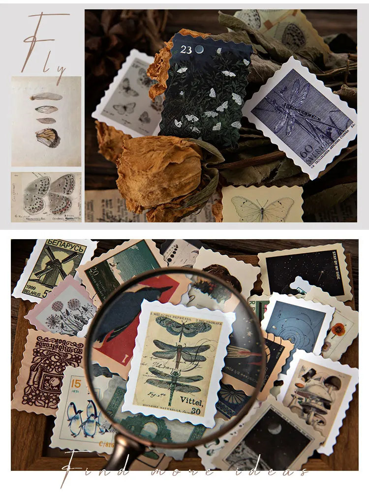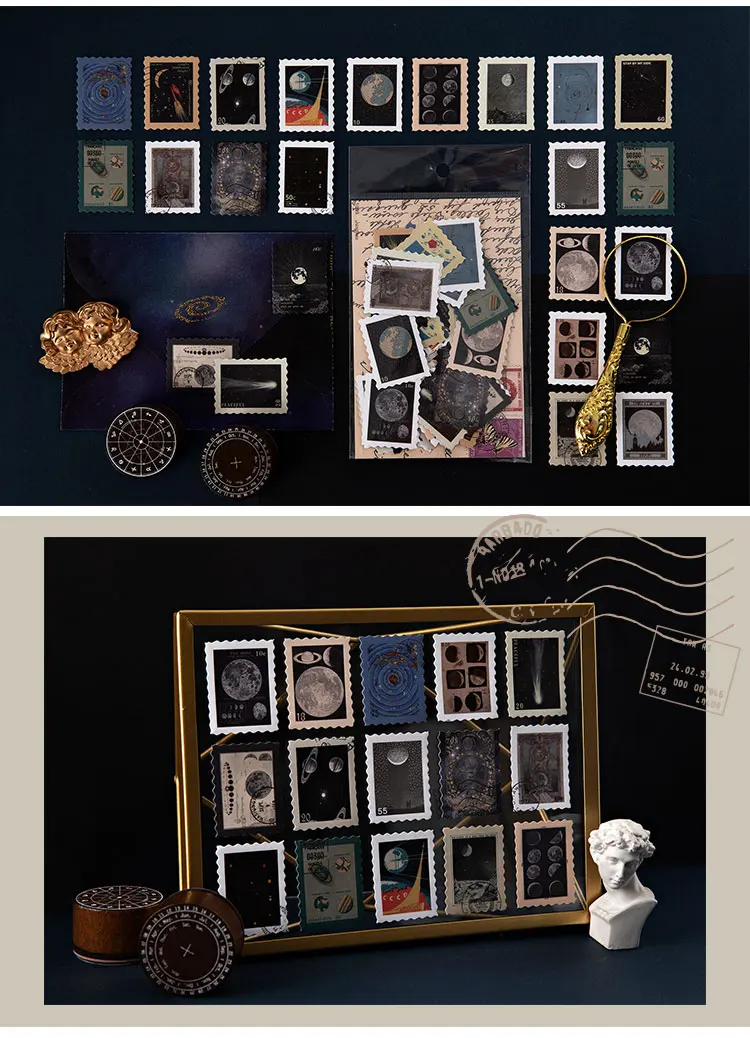 46 шт. винтажные дорожные штампы с растениями и луной, бумажные нак...