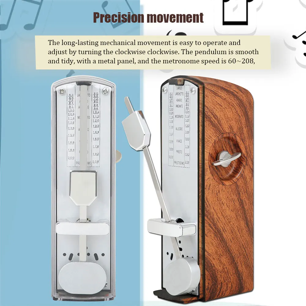 Цвет: белый/винно-Красный/цвет дереваМатериал: пластик и металлПригодность: для фортепиано, гитары, скрипки, укулеле, китайского зитера и других музыкальных инструментовУдар/в минуту: 60 ~ 208/в минутуТовар Размеры: 5*3,1*11 см/2*1,2 * 4.3inТовар Вес: 154g/5,4 oz