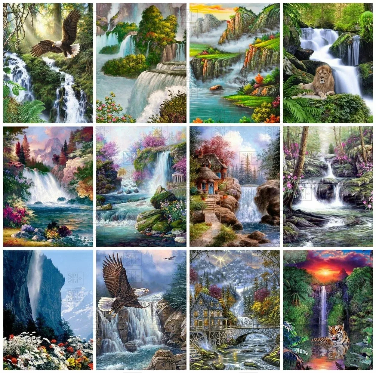 Алмазная вышивка сделай сам, дом Водопад, пейзаж 5D, алмазная живопись, пейзаж природы, мозаичные картины, домашний декор, подарок
