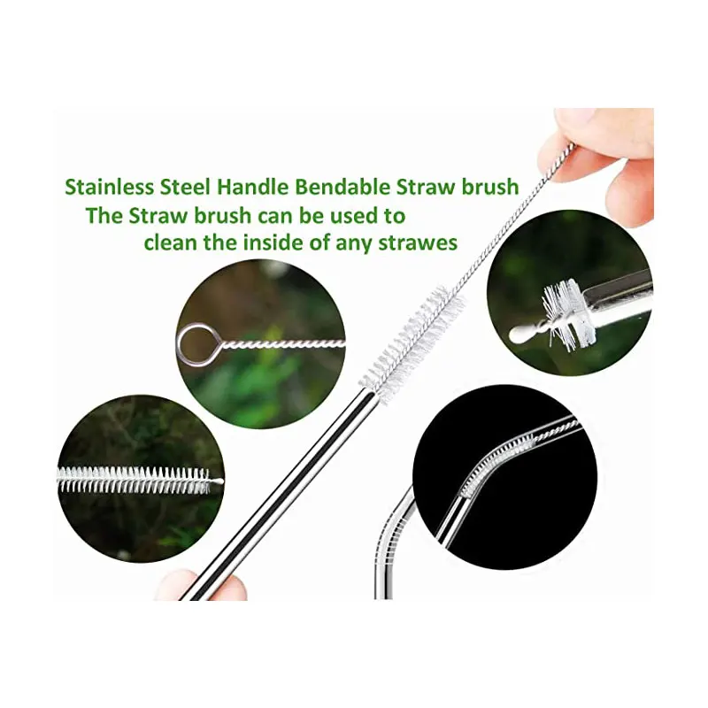 【HOW It's made】 эти чистящие щетки для соломы изготовлены из пищевой нержавеющей стали, обеспечивая при этом долговечность и универсальность. Щетинки сделаны из нейлона, который устойчив и легко чистится. Обходите любую поверхность или маневрируйте на любую глубину.