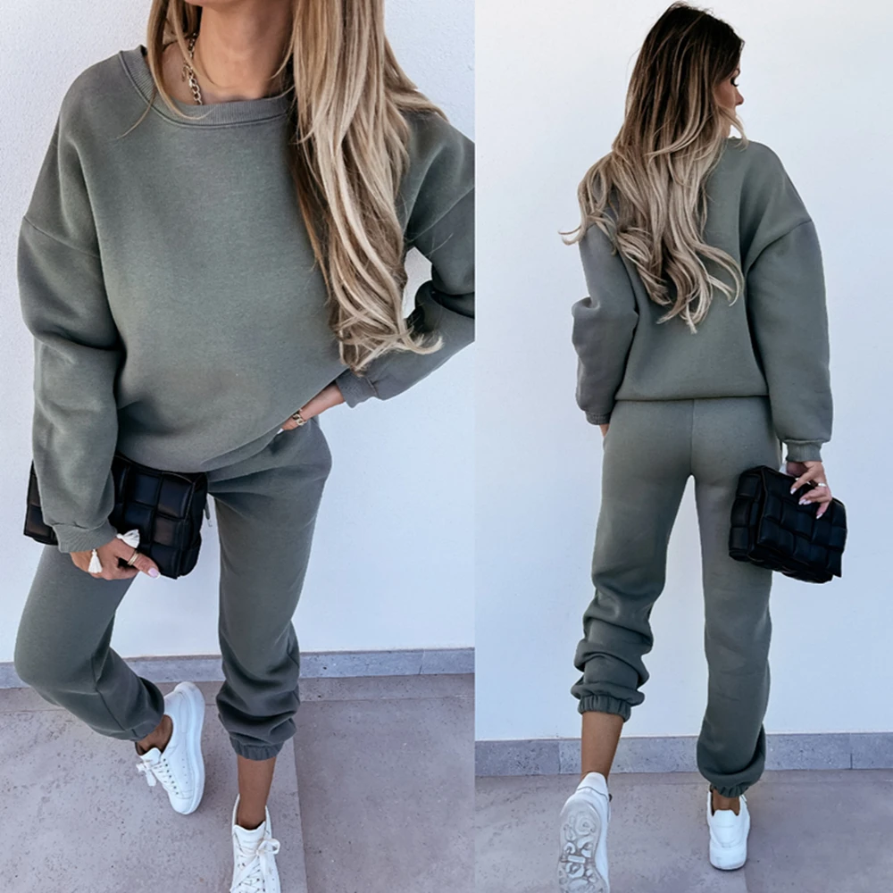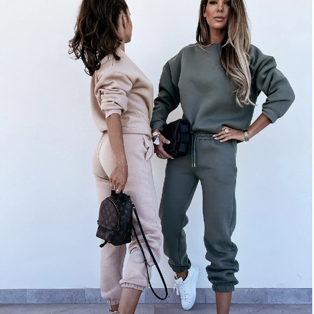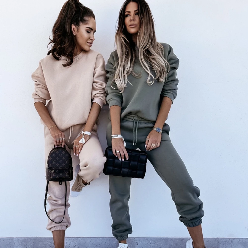 Женские зимние комплекты, комплект из двух предметов, Женский Повседневный флисовый спортивный костюм, спортивные брюки большого размера с длинным рукавом, женский костюм, женские комплекты спортивный костюм женский